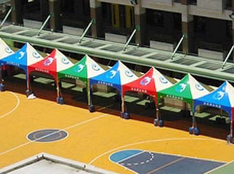 250丹尼PVC夾網膠布厚度,0.37m/m 採高週波接合方式布邊,採摺邊車縫處理抗強風及防水作用