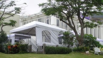 500丹尼PVC夾網膠布厚度,0.5m/m 採高週波接合方式布邊,抓摺邊車縫處理抗強風及防水作用
